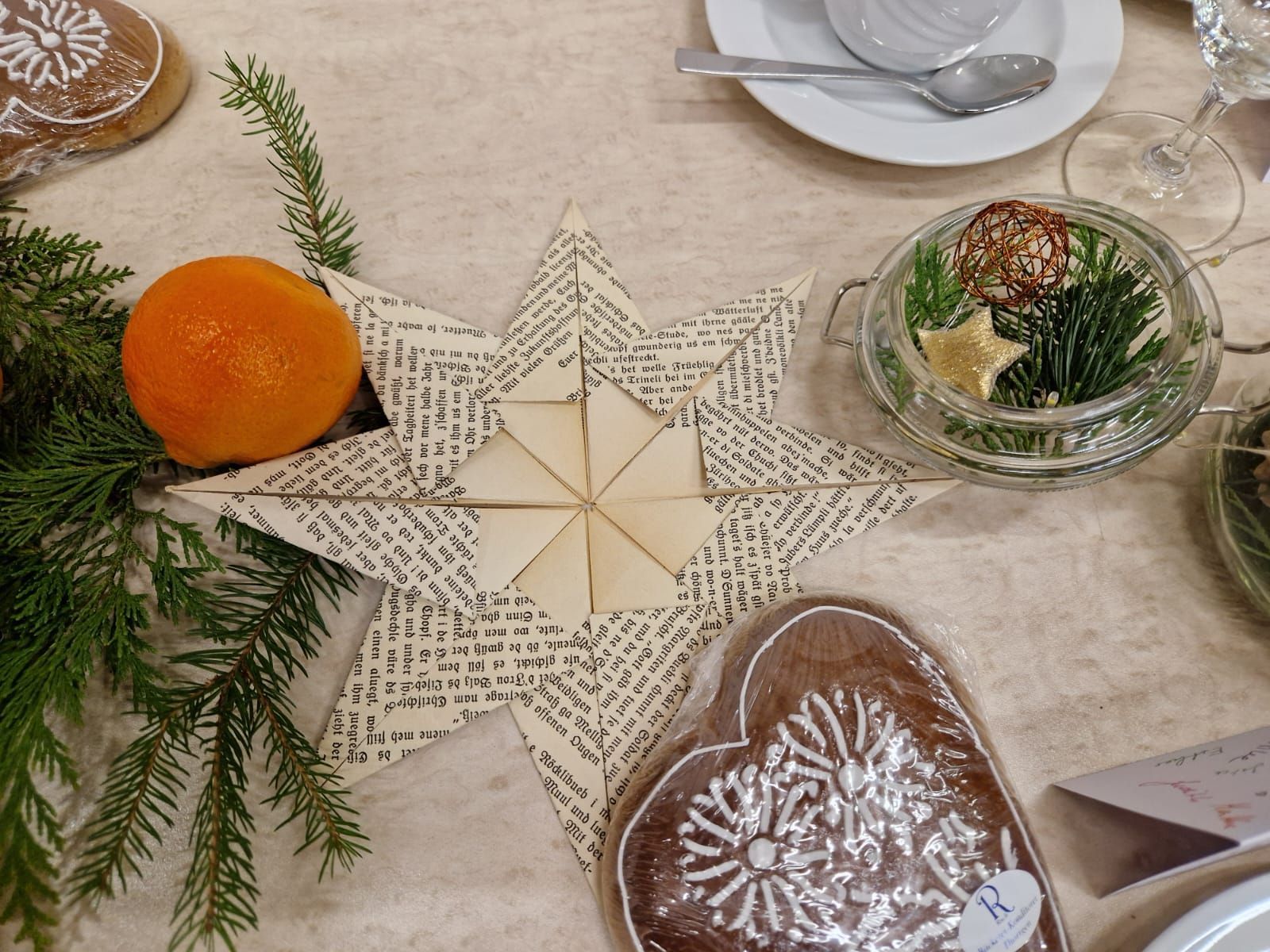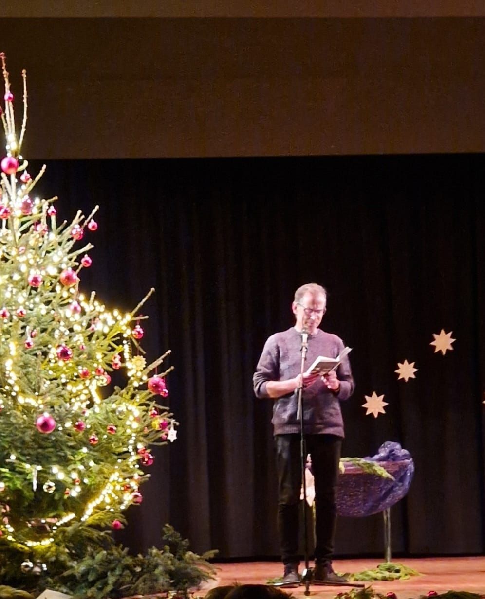Der Saal ist weihnachtlich geschmückt, samt wunderschönem Weihnachtsbaum auf der Bühne. Die Tische schön gedeckt, mit unserem Geschenk an die Frauen, einem Lebkuchen von der Bäckerei Ruch in Thörigen. Zwanzig vor zwei am 12. Dezember, und der Saal ist schon fast voll. Um 14h zählen wir 141 Frauen. Nach der kurzen Begrüssung durch Monika von Ballmoos öffnet sich der Vorhang, und fünf Frauen der Zittergruppe Wanzwil-Heimenhausen unter der Leitung von Verena Hofer stimmen uns mit ihren feinen Melodien auf einen besinnlichen Nachmittag ein. Abwechselnd dazu erzählt uns Pfarrer Johannes Weilmann weihnachtliche Geschichten. Auch die Gäste im Saal sind gefordert: gemeinsam singen wir ein paar Weihnachtslieder. So vergeht die Zeit im Nu. Schon seit vielen Jahren ist das Zvieri gesetzt: es gibt feine Belegte Brote, auch dieses Jahr von der Bäckerei Pratl in Bleienbach. Anschliessend folgen die Gratulationen mit einer Rose zu den runden/halbrunden Geburtstagen. Zum Schluss müssen wir uns von unserem Teammitglied Martha Reinmann verabschieden.